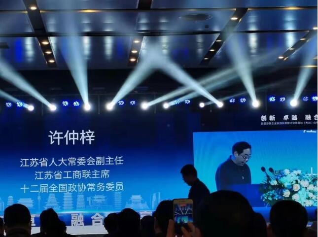 【图为:江苏省人大常委会副主任、省工商联主席许仲梓致辞】